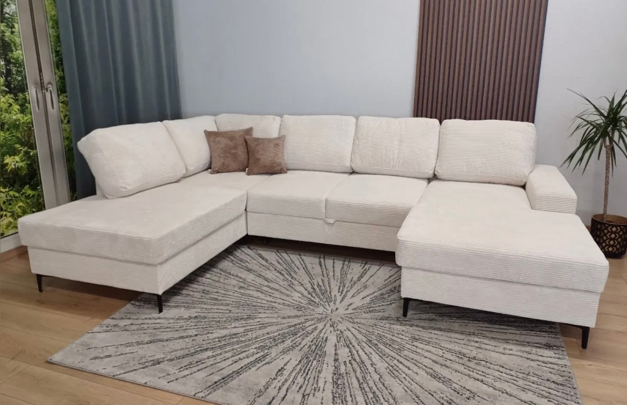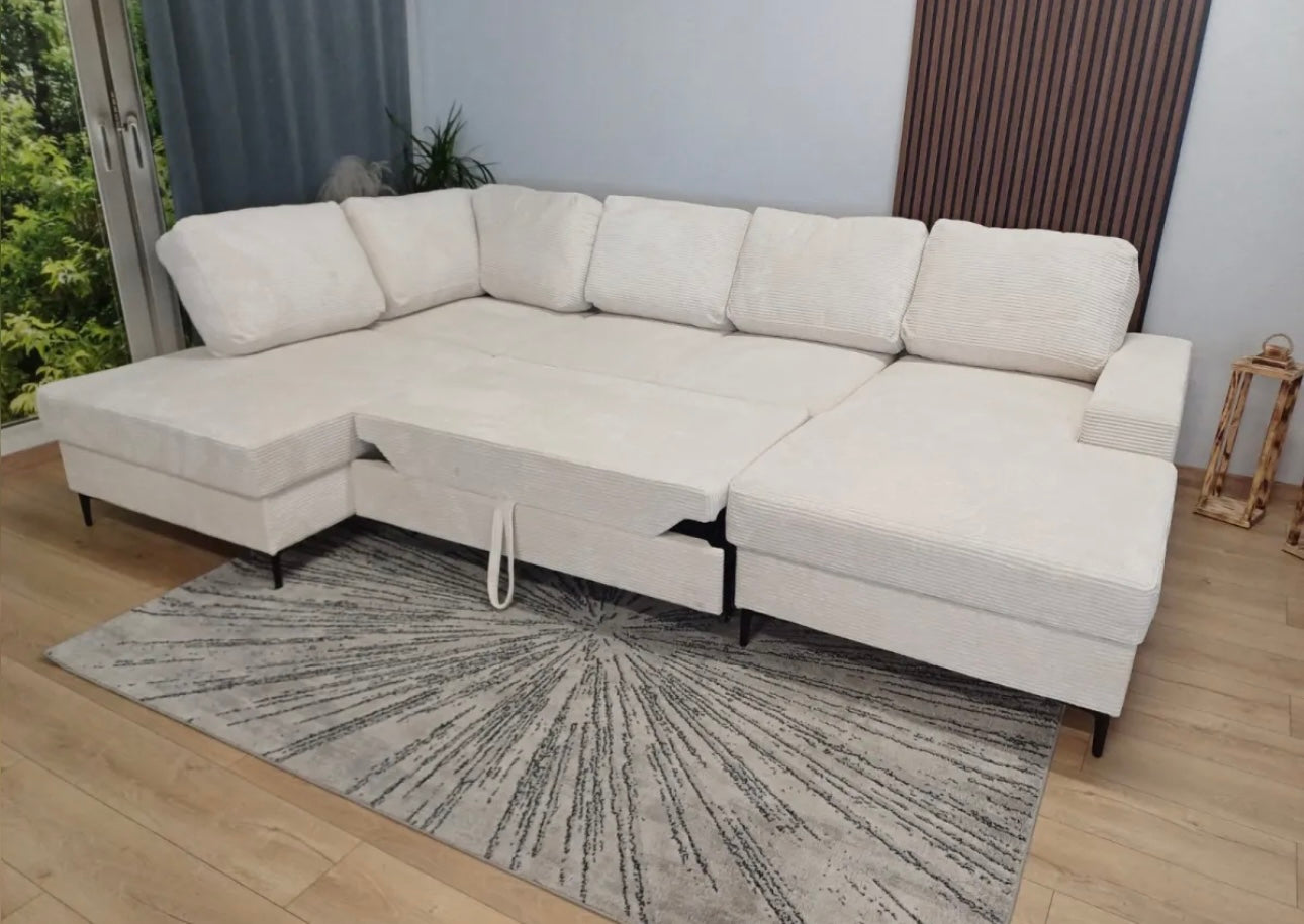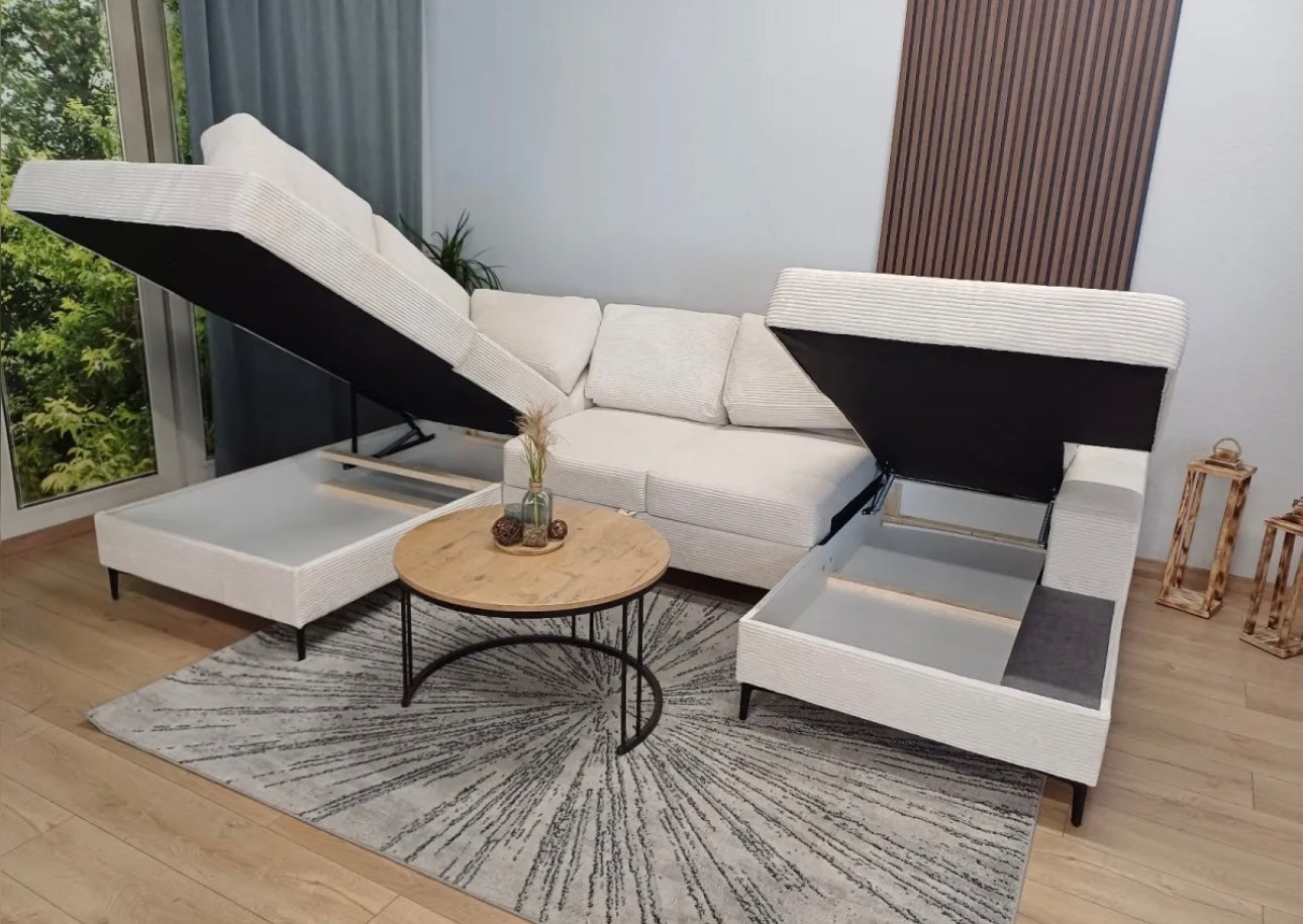 Ce canapé se distingue par sa conception convertible, qui permet de le transformer facilement en lit d’appoint, idéal pour accueillir vos invités. Il est également équipé de deux coffres de rangement spacieux, parfaits pour optimiser votre espace et y ranger couvertures, coussins ou autres objets du quotidien.