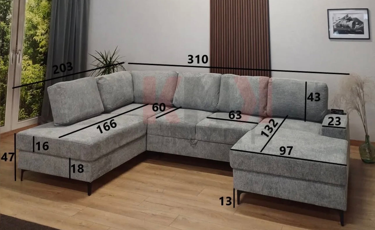 Le canapé d’angle Vienna est une pièce polyvalente et élégante qui allie design moderne et fonctionnalité. Avec ses dimensions généreuses de 203 x 310 x 160 cm, il offre un espace confortable pour toute la famille, tout en s’adaptant parfaitement aux grands comme aux moyens salons.