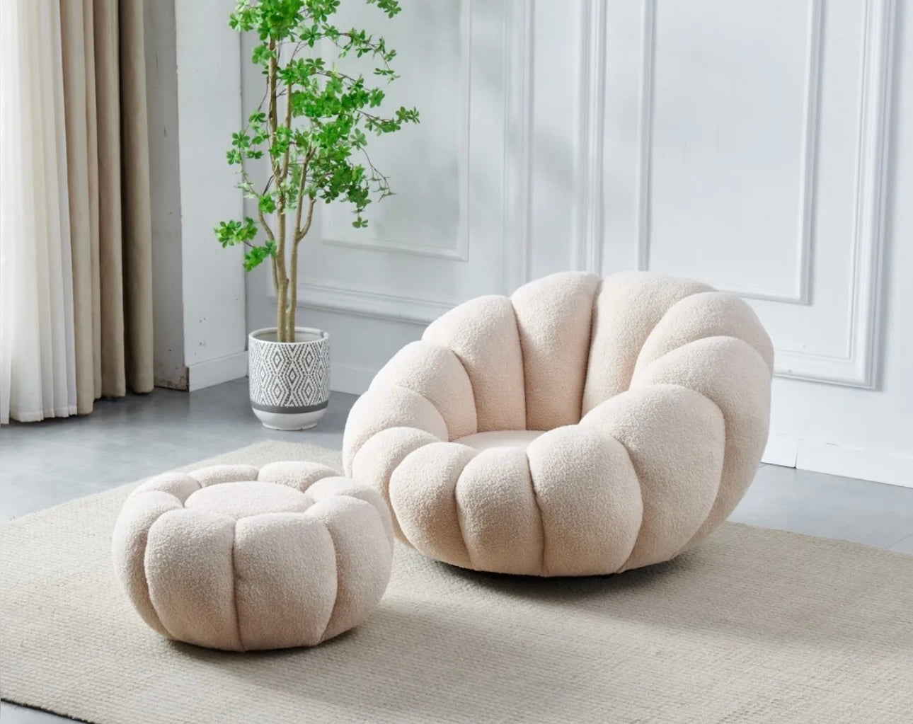 auteuil pivotant COZY avec pouf – Laine bouclée taupe
