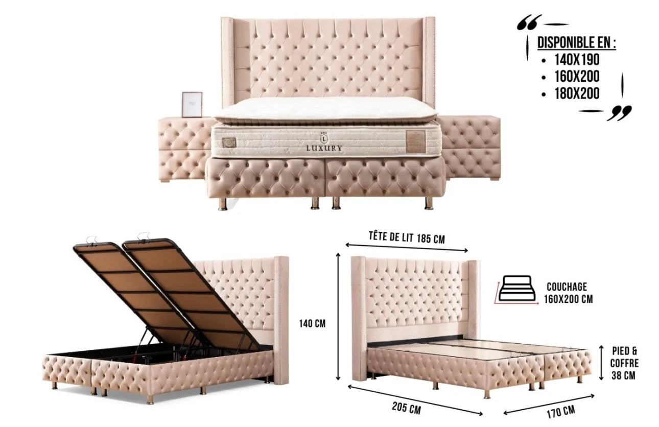 Conçu pour durer, le lit coffre clouté combine une structure robuste et un design intemporel, faisant de lui un choix parfait pour allier esthétique et praticité dans votre chambre.