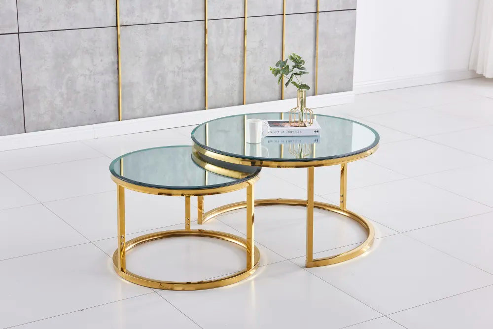 Lot de 2 tables Basses Gigogne ARTO Gold et plateau en verre