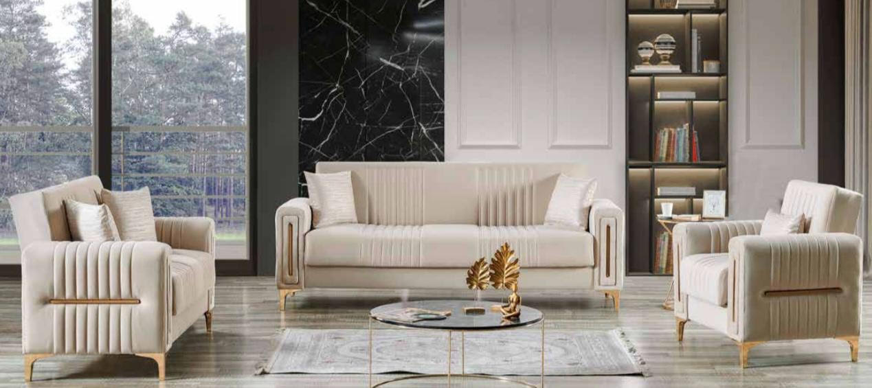 Le salon MORENO 3 + 2 + 1 est un ensemble de canapés élégant et fonctionnel, conçu pour offrir confort et style à votre espace de vie. Ce set comprend trois éléments : un canapé 3 places, un canapé 2 places et un fauteuil 1 place.