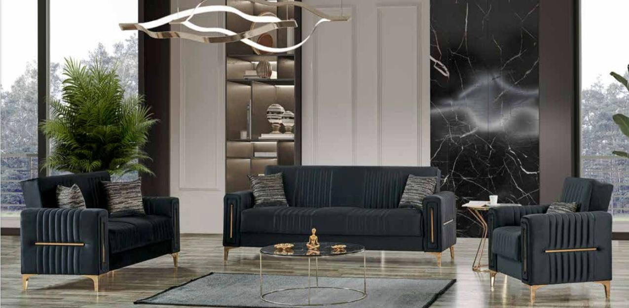Salon MORENO 3 + 2 + 1 NOIR et BEIGE