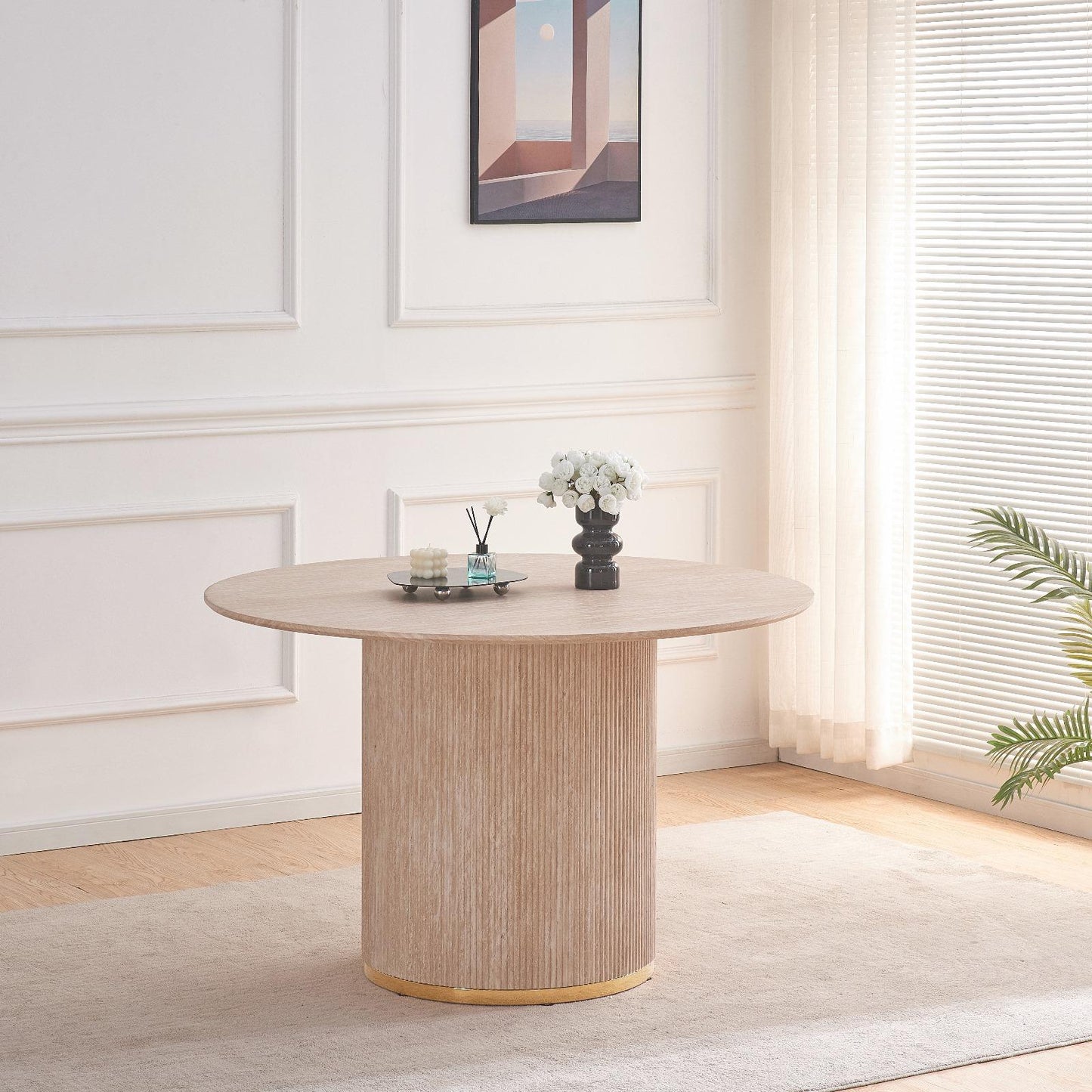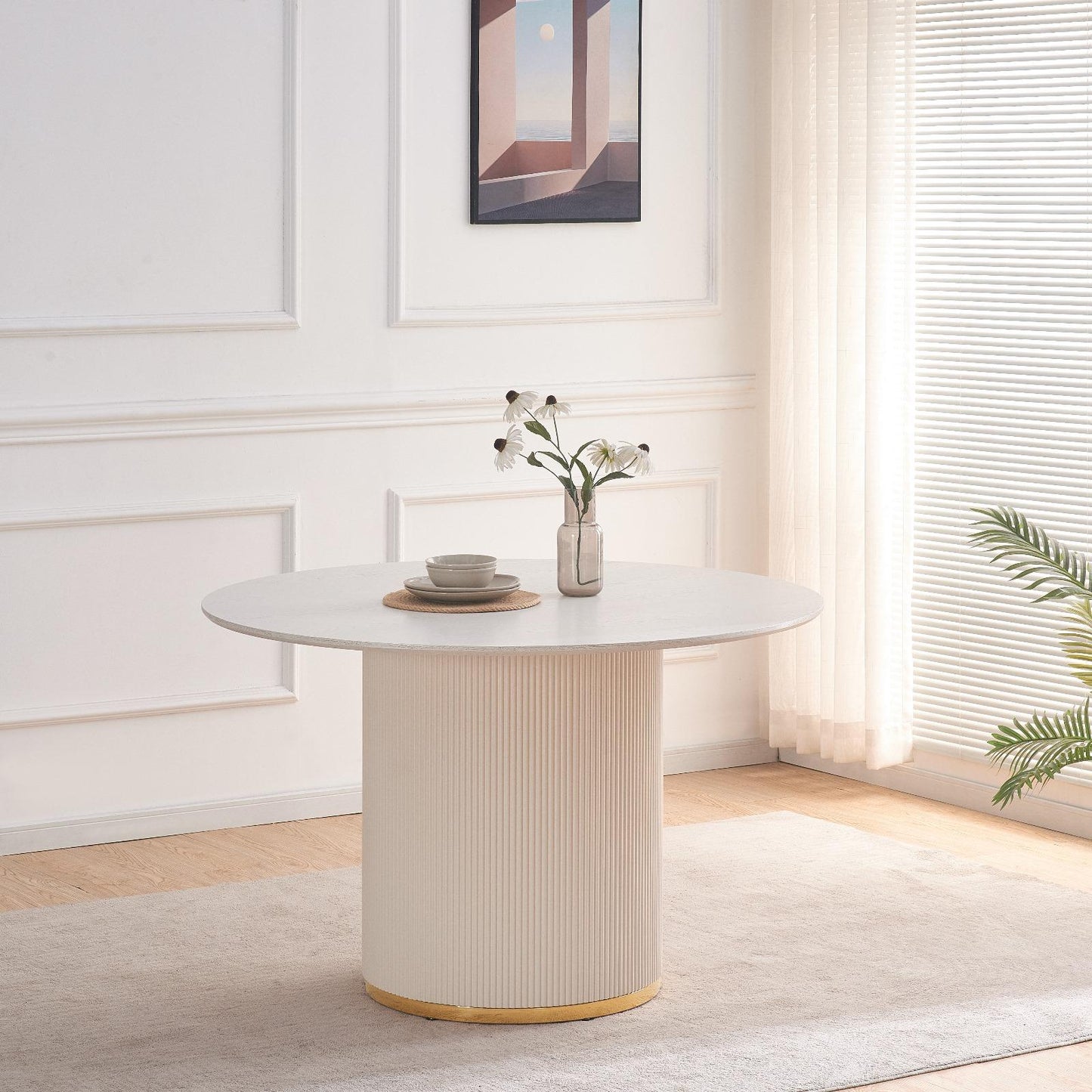 Table à manger MAYA ECRU OU BEIGE EFFET TRAVERTIN BORDURE DORE 120cm