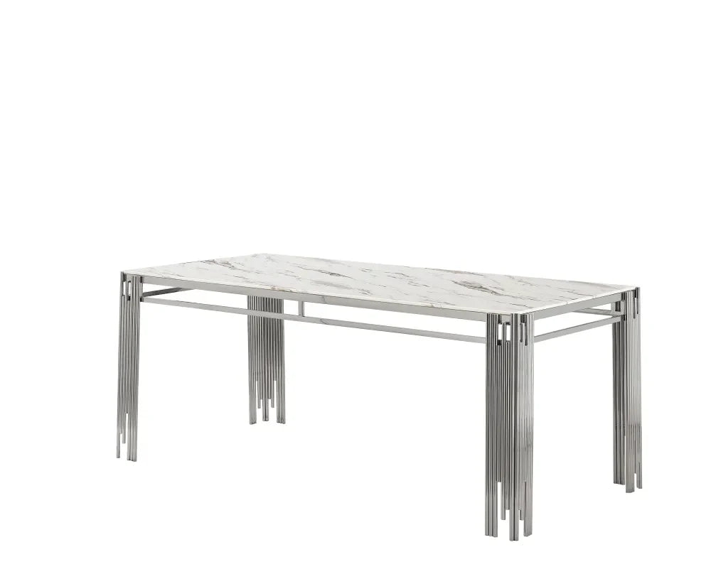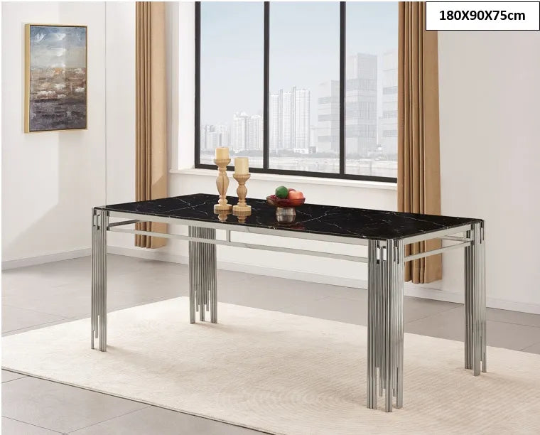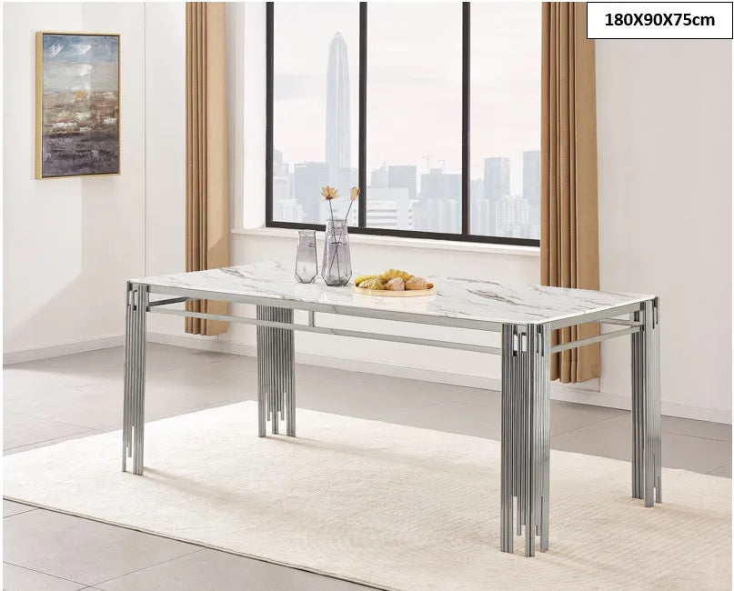 Table à manger XXL FLUTE Chrome Plateau en verre Marbré 180 cm