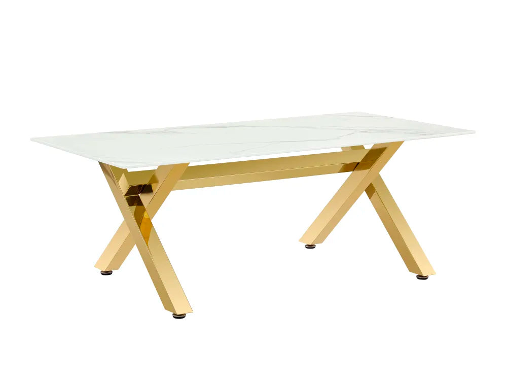 Table de repas IXE métal gold marbre blanc 180x90x75cm