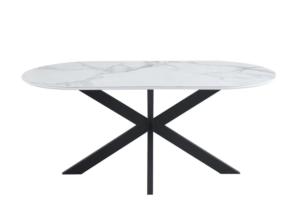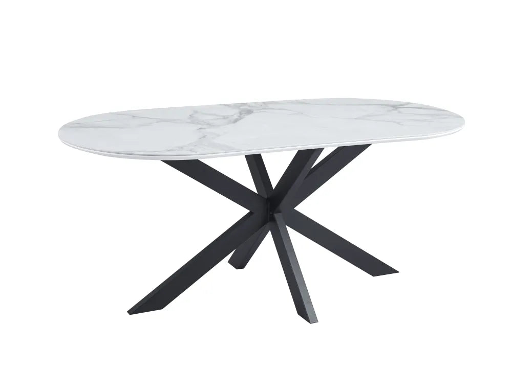 Table de repas MANON PIED NOIR PLATEAU CERAMIQUE MARBRE BLANC 180x90cm